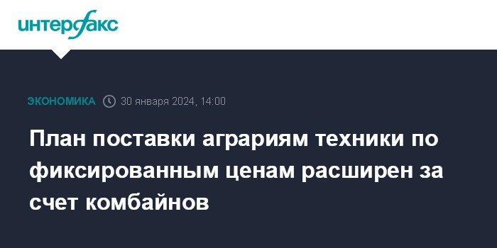 План поставки аграриям техники по фиксированным ценам расширен за счет комбайнов