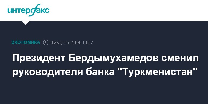 Ашхабад. 8 августа. INTERFAX.RU - Президент Гурбангулы Бердымухамедов назначил нового председателя правления Государственного коммерческого банка "Туркменистан".