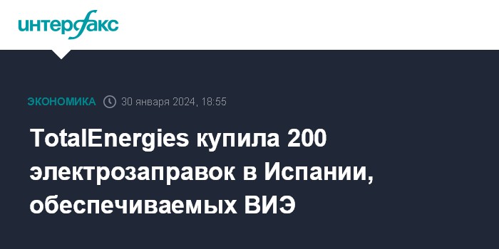 TotalEnergies купила 200 электрозаправок в Испании, обеспечиваемых ВИЭ