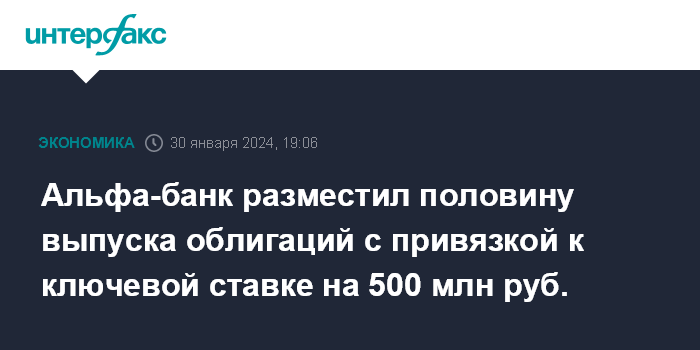 Альфа-банк разместил половину выпуска облигаций с привязкой к ключевой ставке на 500 млн руб.