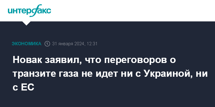 Москва. 31 января. INTERFAX.RU - Россия на данный момент не ведет переговоров ни о поставках российского газа в Европу через Украину, ни о продаже газа на границе с Россией и Украиной, ни с европейской, ни с украинской стороной, заявил журналистам вице-премьер РФ Александр Новак.