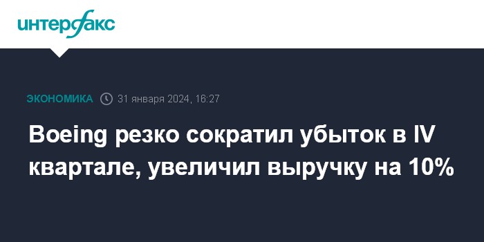 Boeing резко сократил убыток в IV квартале, увеличил выручку на 10%
