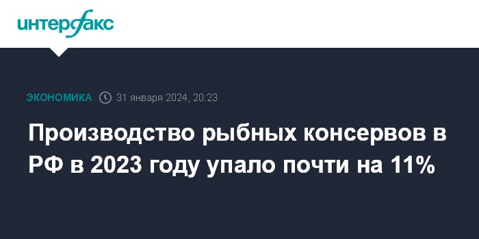 Москва. 31 января. INTERFAX.RU - Производство рыбных консервов в РФ в 2023 году, несмотря на рекордный вылов рыбы (5,3 млн тонн), снизилось.