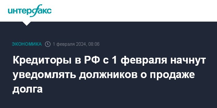 Кредиторы в РФ с 1 февраля начнут уведомлять должников о продаже долга