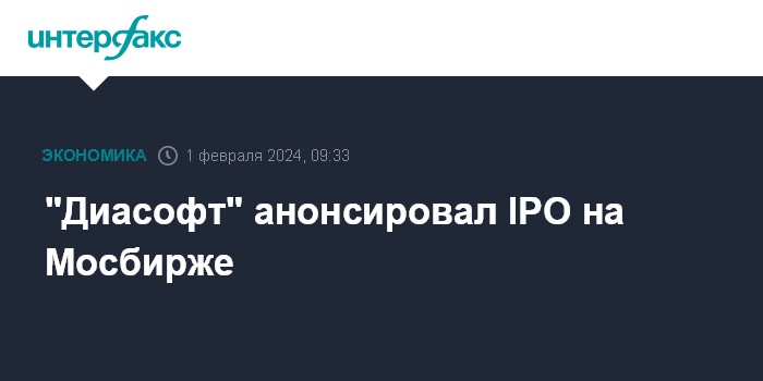 Москва. 1 февраля. INTERFAX.RU -ПАО "Диасофт" (головная структура одноименной группы компаний, занимается разработкой ПО для российского финансового сектора) официально объявило о намерении провести IPO на "Московской бирже".
