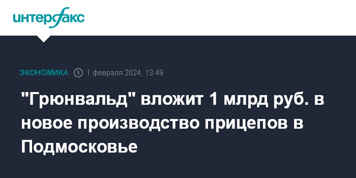 "Грюнвальд" вложит 1 млрд руб. в новое производство прицепов в Подмосковье
