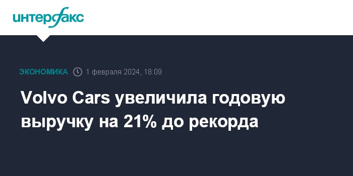 Volvo Cars увеличила годовую выручку на 21% до рекорда