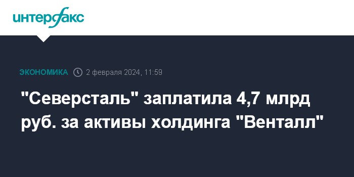 "Северсталь" заплатила 4,7 млрд руб. за активы холдинга "Венталл"