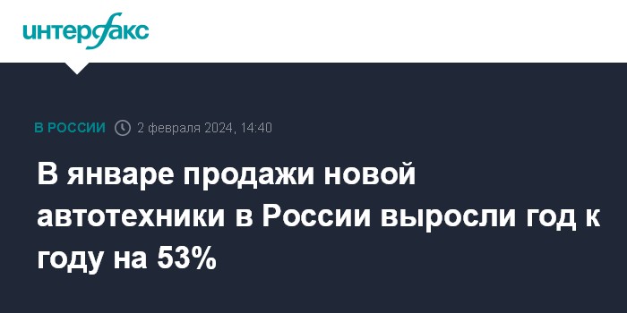 В январе продажи новой автотехники в России выросли год к году на 53%