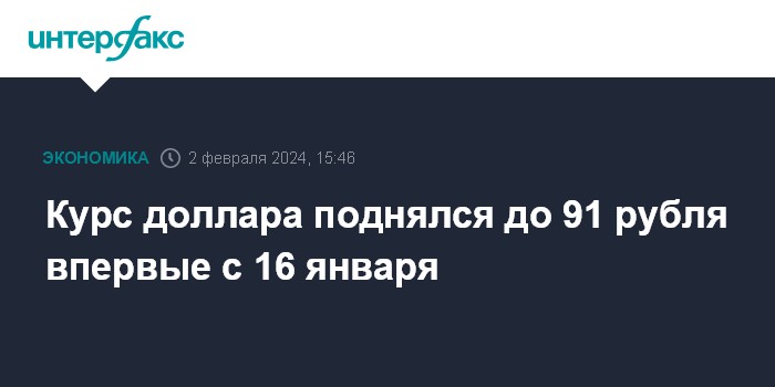 Курс доллара поднялся до 91 рубля впервые с 16 января