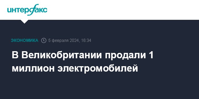 Москва. 5 февраля. INTERFAX.RU - Продажи электромобилей в Великобритании за все время достигли 1 миллиона единиц, говорится в сообщении Общества производителей и продавцов автомобилей (SMMT).