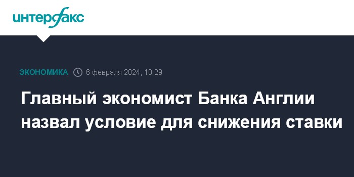 Главный экономист Банка Англии назвал условие для снижения ставки
