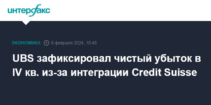 Москва. 6 февраля. INTERFAX.RU - UBS Group AG, мировой лидер в сфере управления активами состоятельных клиентов, зафиксировал чистый убыток по итогам второго квартала подряд в связи с крупными расходами на интеграцию Credit Suisse.