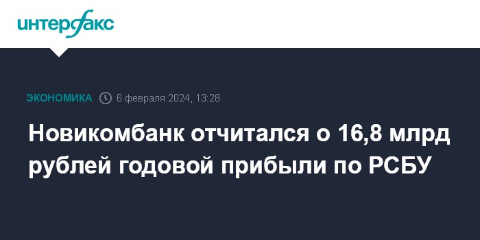 Новикомбанк отчитался о 16,8 млрд рублей годовой прибыли по РСБУ