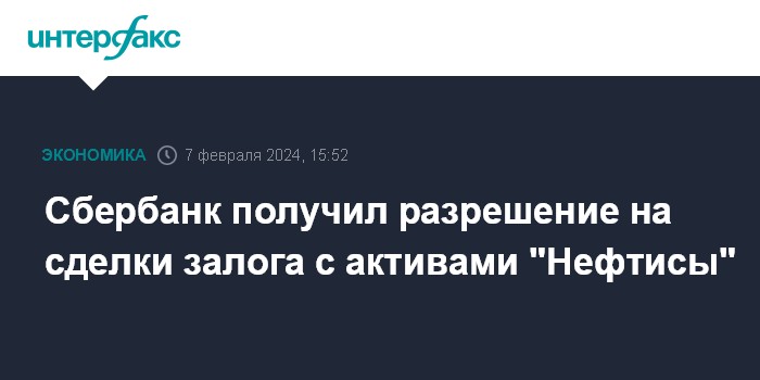 Сбербанк получил разрешение на сделки залога с активами "Нефтисы"