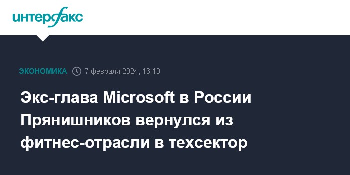 Экс-глава Microsoft в России Прянишников вернулся из фитнес-отрасли в техсектор