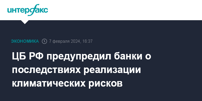 ЦБ РФ предупредил банки о последствиях реализации климатических рисков