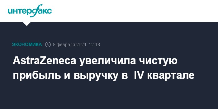 Москва. 8 февраля. INTERFAX.RU - Фармацевтическая компания AstraZeneca Plc зафиксировала рост чистой прибыли и выручки в четвертом квартале 2023 года, причем скорректированная прибыль оказалась хуже прогнозов аналитиков, а выручка немного превзошла ожидания.