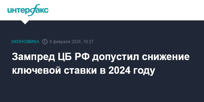 Зампред ЦБ РФ допустил снижение ключевой ставки в 2024 году