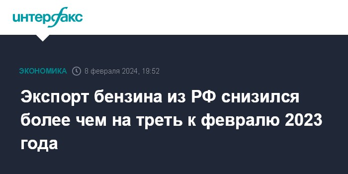 Экспорт бензина из РФ снизился более чем на треть к февралю 2023 года