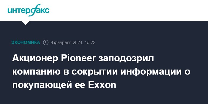 Акционер Pioneer заподозрил компанию в сокрытии информации о покупающей ее Exxon