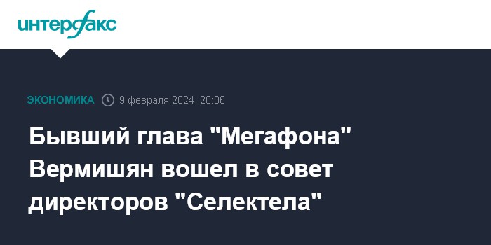 Бывший глава "Мегафона" Вермишян вошел в совет директоров "Селектела"