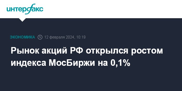 Рынок акций РФ открылся ростом индекса МосБиржи на 0,1%