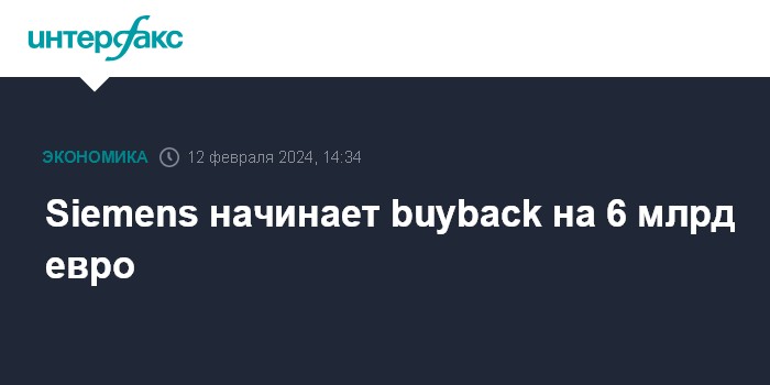 Москва. 12 февраля. INTERFAX.RU - Крупнейший в Европе промышленный конгломерат Siemens AG в понедельник начинает пятилетнюю программу обратного выкупа акций на сумму до 6 млрд евро, говорится в сообщении компании.
