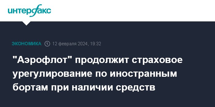 "Аэрофлот" продолжит страховое урегулирование по иностранным бортам при наличии средств