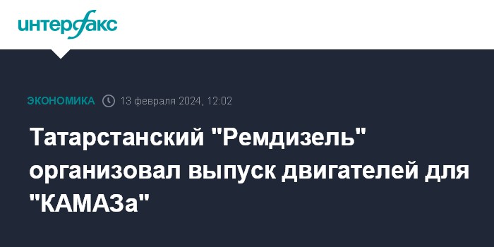 "В декабре 2023 года компания ("Ремдизель" - ИФ) отгрузила в интересах "КАМАЗа" первую партию двигателей внутреннего сгорания (ДВС) в объеме более 180 штук. В планах компании на этот год выпустить более 1 тыс. ДВС, а с 2025 года выйти на ежегодный объем 1,6 тыс. единиц", - говорится в пресс-релизе.