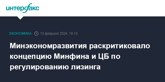 Минэкономразвития раскритиковало концепцию Минфина и ЦБ по регулированию лизинга