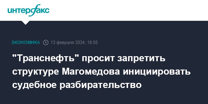 "Транснефть" просит суд в РФ запретить Магомедову вести разбирательство в АнглииЧитать подробнееСогласно данным в судебной картотеке, заявление поступило 7 февраля. Предварительное заседание назначено на 12 марта.
