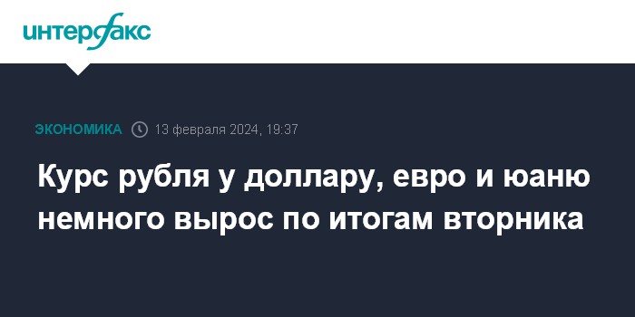 Москва. 13 февраля. INTERFAX.RU - Доллар, евро и китайский юань немного понизились на Московской бирже по итогам торгов вторника; в целом в течение дня основные валюты демонстрировали слабо выраженную динамику от плюса к минусу в ожидании новых драйверов к более заметным движениям. Рубль подрос к бивалютной корзине в ожидании ключевых событий недели и на фоне укрепления цен на нефть.