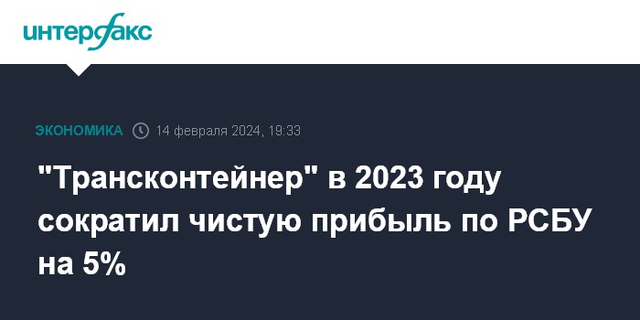 Москва. 14 февраля. INTERFAX.RU - Чистая прибыль ПАО "Трансконтейнер" (входит в группу "Дело") по РСБУ в 2023 году составила 17,157 млрд рублей, что на 5,2% меньше, чем в 2022 году, говорится в отчете компании.