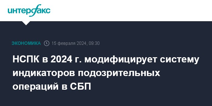 Москва. 15 февраля. INTERFAX.RU - Национальная система платежных карт (НСПК) в 2024 году собирается модифицировать систему индикаторов подозрительных операций в Системе быстрых платежей (СБП), заявил в четверг руководитель кибербезопасности НСПК Артем Гутник.