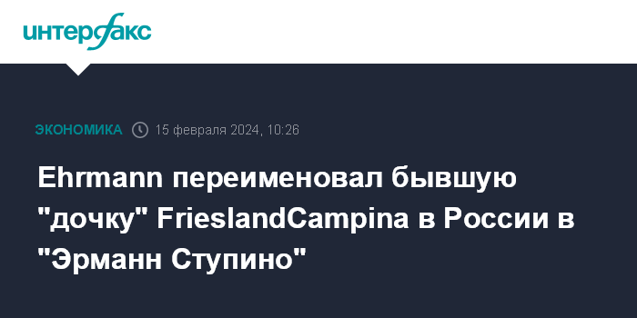 Ehrmann переименовал бывшую "дочку" FrieslandCampina в России в "Эрманн Ступино"