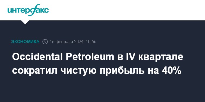 Москва. 15 февраля. INTERFAX.RU - Американский производитель сланцевой нефти Occidental Petroleum в четвертом квартале 2023 года сократил чистую прибыль на 40%, однако скорректированный показатель и выручка превзошли ожидания экспертов.
