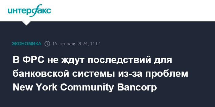 Москва. 15 февраля. INTERFAX.RU - Сложности в New York Community Bancorp Inc., о которых стало известно недавно, не являются сигналом системных проблем в банковском секторе, считает заместитель председателя ФРС по банковскому надзору Майкл Барр. Он заявил об этом на мероприятии Национальной ассоциации экономики бизнеса (NABE) в Вашингтоне.