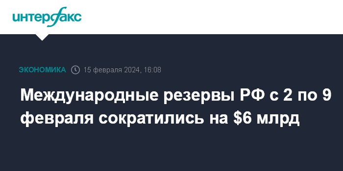 Международные резервы РФ с 2 по 9 февраля сократились на $6 млрд