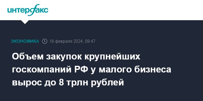 Объем закупок крупнейших госкомпаний РФ у малого бизнеса вырос до 8 трлн рублей