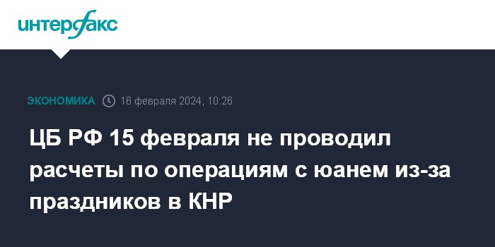 ЦБ РФ 15 февраля не проводил расчеты по операциям с юанем из-за праздников в КНР