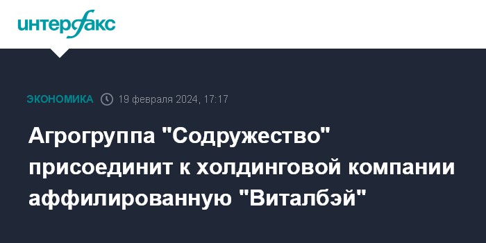 Агрогруппа "Содружество" присоединит к холдинговой компании аффилированную "Виталбэй"