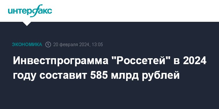 Инвестпрограмма "Россетей" в 2024 году составит 585 млрд рублей