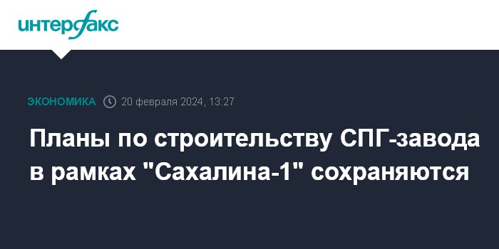 Планы по строительству СПГ-завода в рамках "Сахалина-1" сохраняются