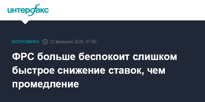 ФРС больше беспокоит слишком быстрое снижение ставок, чем промедление