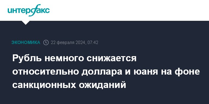 Москва. 22 февраля. INTERFAX.RU - Доллар и юань умеренно подрастают на Московской бирже на старте торгов в четверг, рубль немного снижается на фоне активно обсуждаемой санкционной повестки.