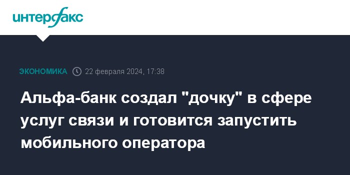 "Создание виртуального мобильного оператора – один из этапов реализации стратегии розничного бизнеса. Он ориентирован на расширение спектра нефинансовых сервисов и усиление ценностного предложения модели повседневного банка и монетизации растущего портфеля клиентов. Банк планирует предложить своим клиентам услуги мобильной связи под брендом "Альфа-Мобайл" уже во второй половине 2024 года. В настоящее время сформирована топ-команда проекта, идут переговоры с потенциальными партнерами по проекту", - передала "Интерфаксу" слова Пяткова пресс-служба Альфа-банка.