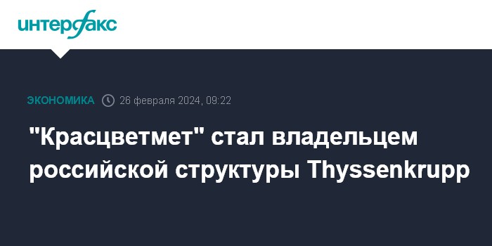Согласно материалам, 22 февраля "Красцветмет" стал владельцем 99% в уставном капитале компании, еще 1% отошел АО "Аксион - редкие и драгоценные металлы" (АРДМ, Московская область, принадлежит "Красцветмету").