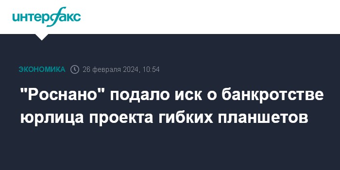 "Роснано" подало иск о банкротстве юрлица проекта гибких планшетов