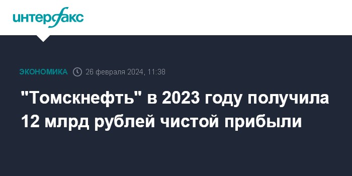 Москва. 26 февраля. INTERFAX.RU - АО "Томскнефть" ВНК" (на паритетных началах принадлежит ННК и "Газпром нефти") по итогам 2023 года получило 11,8 млрд рублей чистой прибыли по РСБУ против 18,7 млрд рублей чистого убытка годом ранее, говорится в отчетности компании.